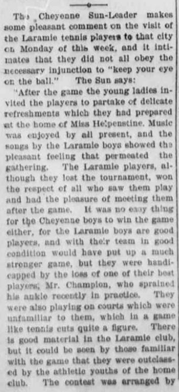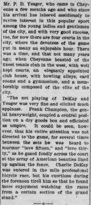 In 1883, Cheyenne's Lawn Tennis club was built on Sixteenth street (exact location unknown) on a 132'
