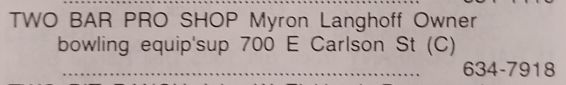 The great Joe Wilman provided free certified instruction to bowlers per a 1962 Polk Cheyenne City Business Directory advertisement.