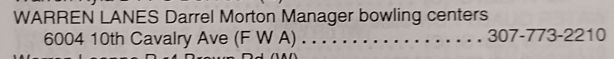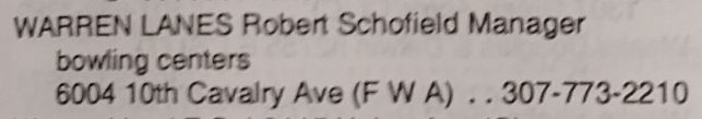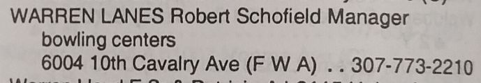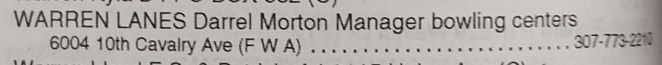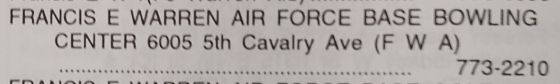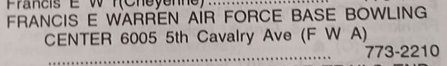 | Names: | FE Warren AFB Bowling Center (19?? - 2002) Warren Lanes (2002 - present) |