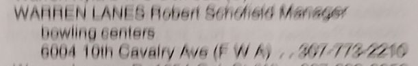 Robert Schofield was the manager of the lanes per the 2002 through 2007 Polk Cheyenne City Directory.